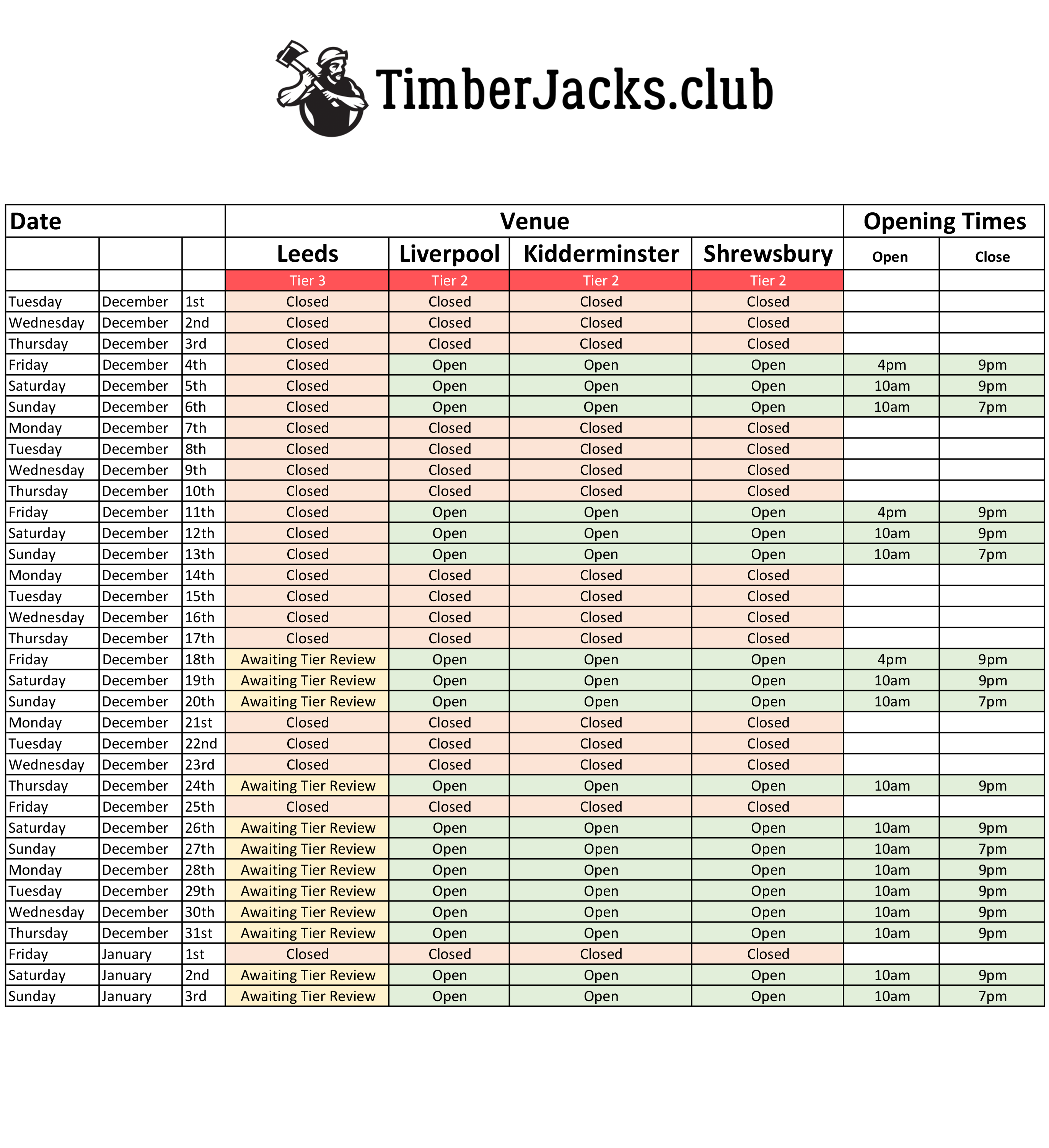 Nov. 26, 2020 December 2020 Opening Hours Book Online Share Share Share on Facebook Share Share Share on Facebook